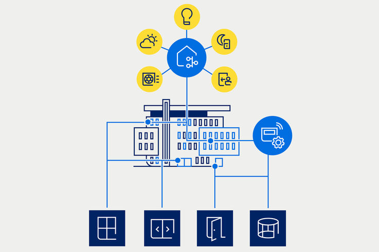 Det er ikke bare biler som vil kjøre selv i fremtiden: Bygninger blir også stadig mer automatiserte. De regulerer oppvarming, ventilasjon og klimaanlegg automatisk. De skifter belysning til riktig nivå avhengig av den ytre lysstyrken og om det er folk til stede i rommet. De trekker opp eller senker persienner, og åpner og lukker vinduer og dører. Og de gjør alt dette samtidig som de svarer nøyaktig på brukernes eller beboernes behov når de passerer gjennom bygningen. Når de forlater bygningen, reduseres energiforbruket automatisk til et minimum, tilgangspunktene låses og alarmsystemet aktiveres.